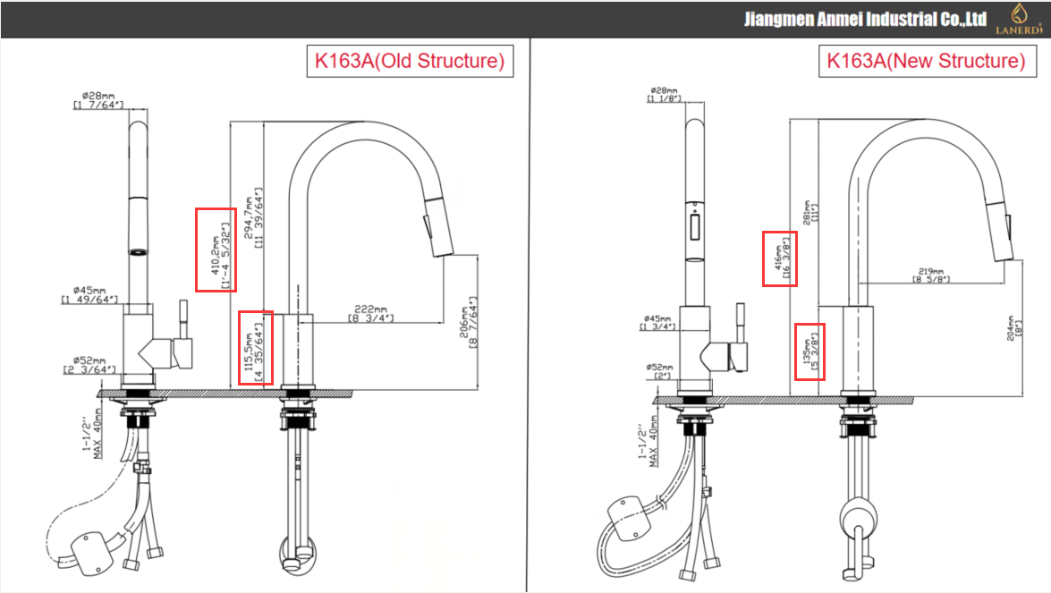 אורך פיה- 219 מ”מ גובה ברז- 416 מ”מ גובה פיה ממשטח- 204 מ”מ כפוף לתנאי תעודת אחריות