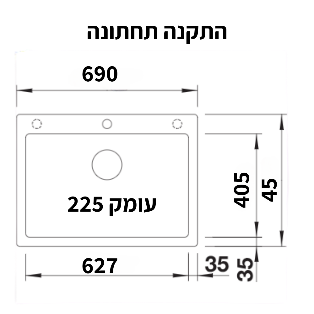 כיור יחיד גדול. אפשרות ל-3 חורים