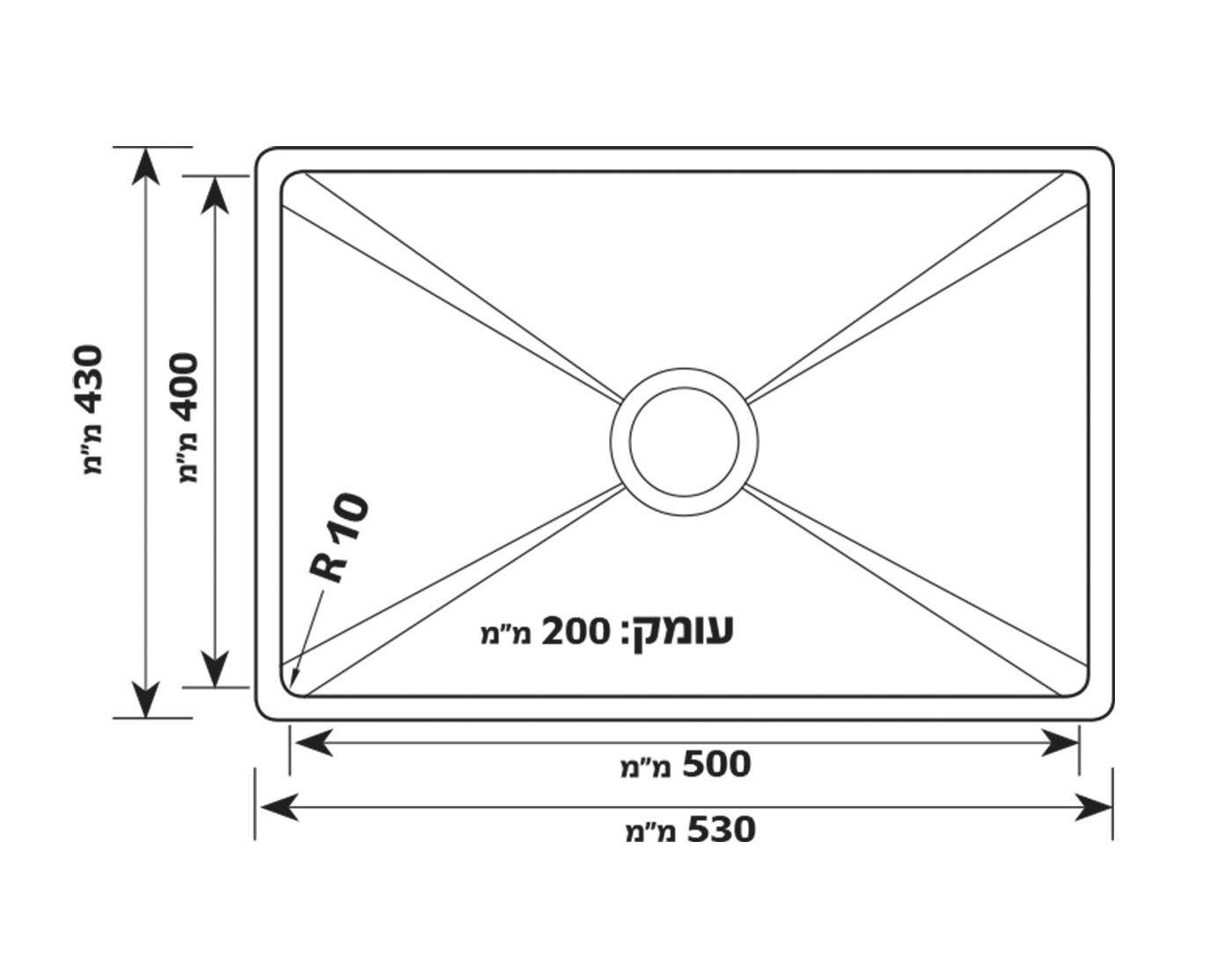 כיור נירוסטה, עשוי מנירוסטה 10/18, אירופאית, שאינה מחלידה, עבה במיוחד 1.2 מ”מ, מגיע עם יציאה 3.5 איטלקית איכותית, ודיפון בגב הכיור נגד רעש של טיפות המים